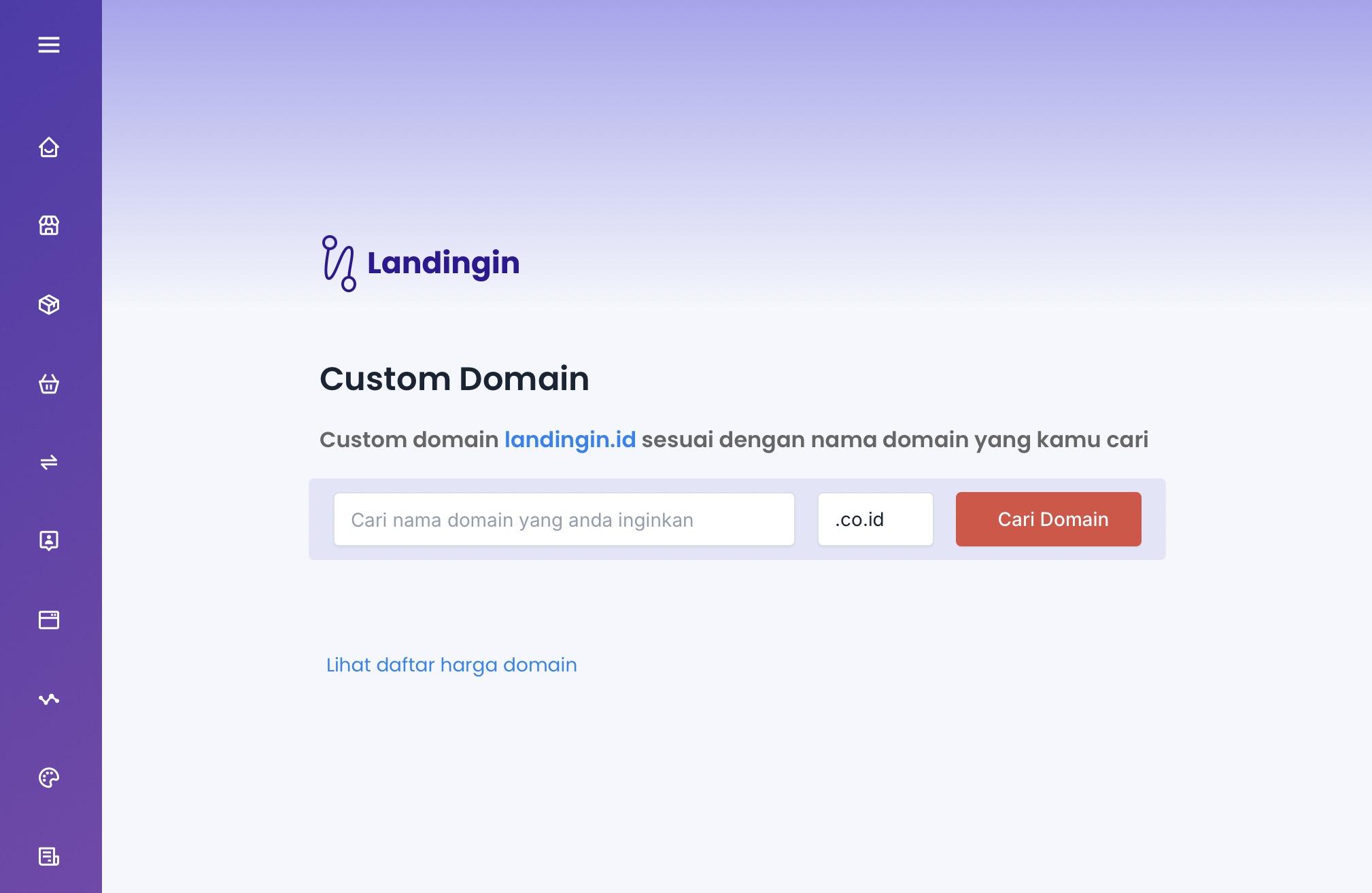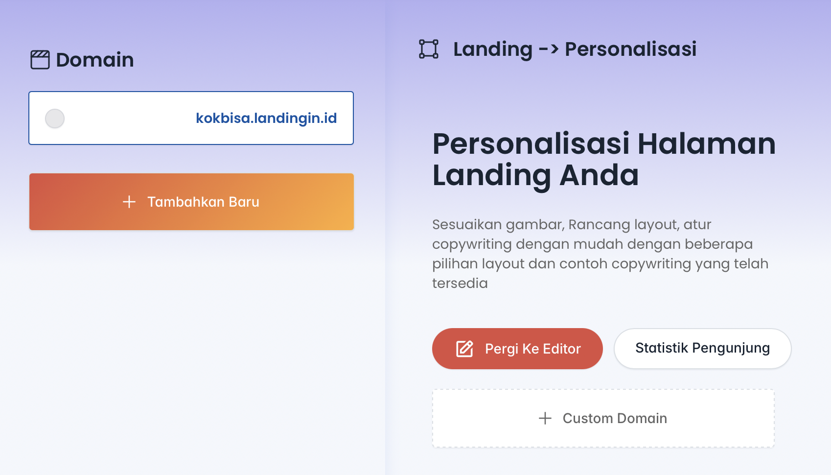 Pada halaman landing page klik button "Custom Domain" seperit screenshot dibawah ini :