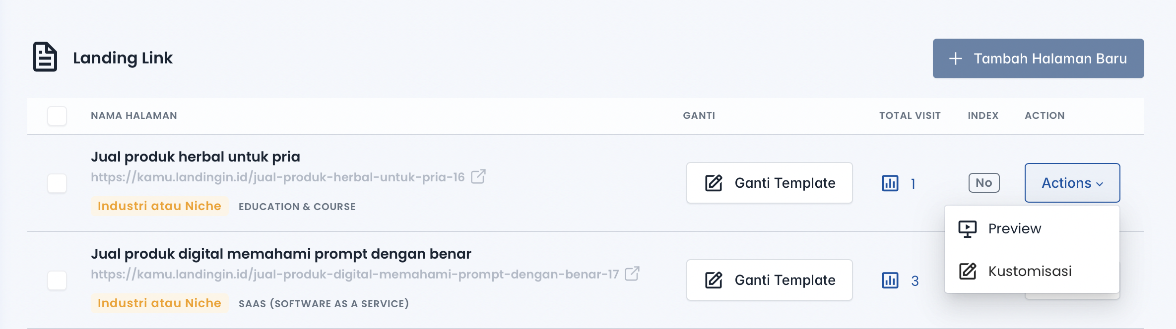kustomiasi landing page anda.