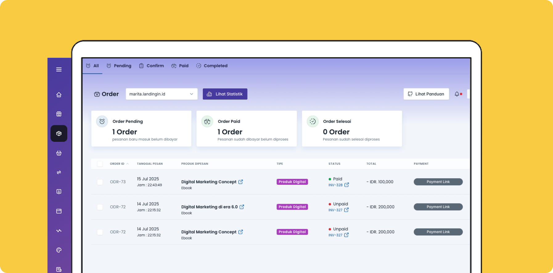 Setiap pemesanan yang dilakukan dari fitur chekout melalui toko akan masuk kesini dan anda dapat mengatur dan mengelola daftar pemesanan di masing toko yang anda miliki.
