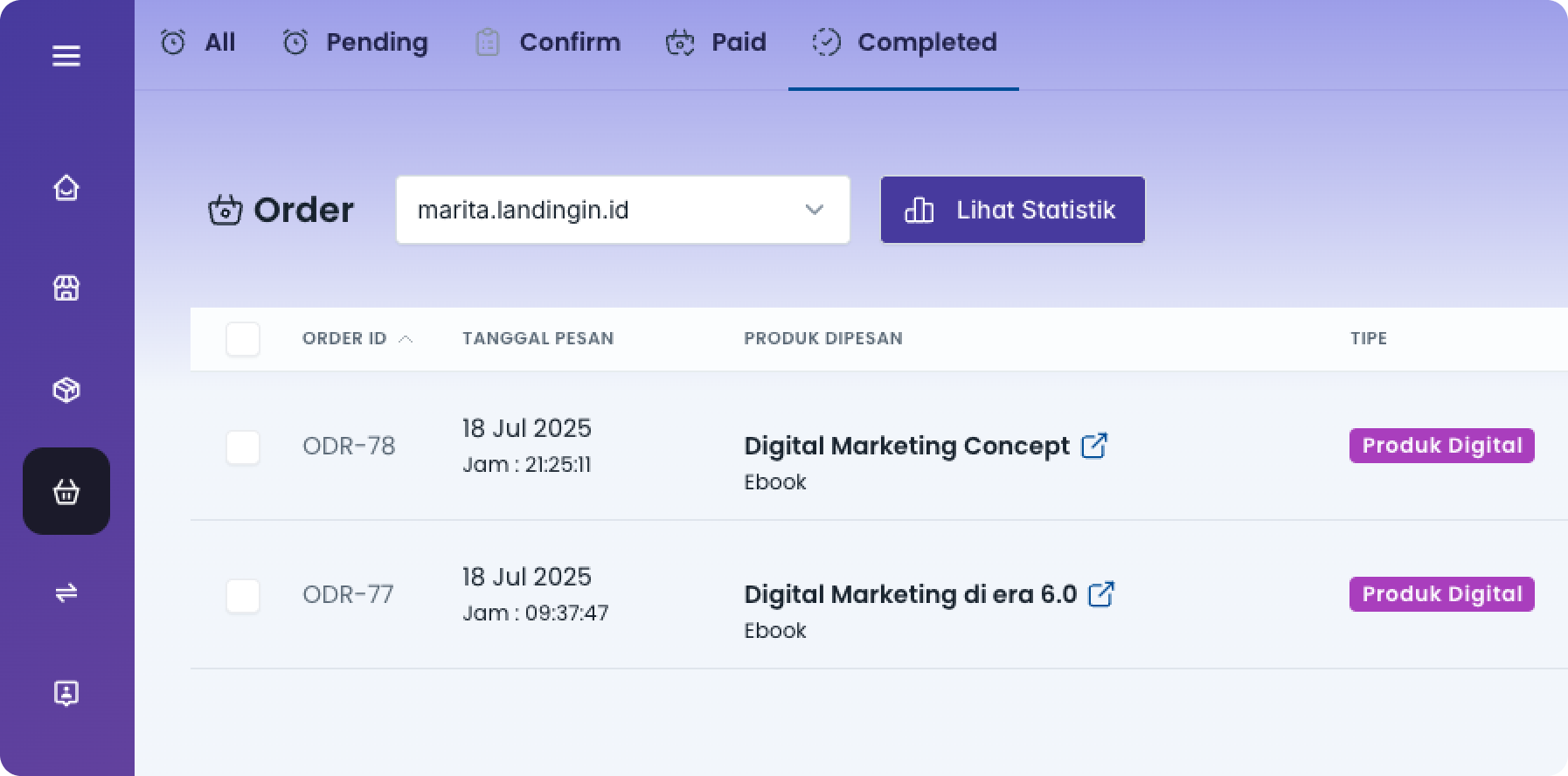 Tandai data order anda sudah selesai. ini menandakan bahwa flow pemesanan sudah selesai dalam satu siklus order.
