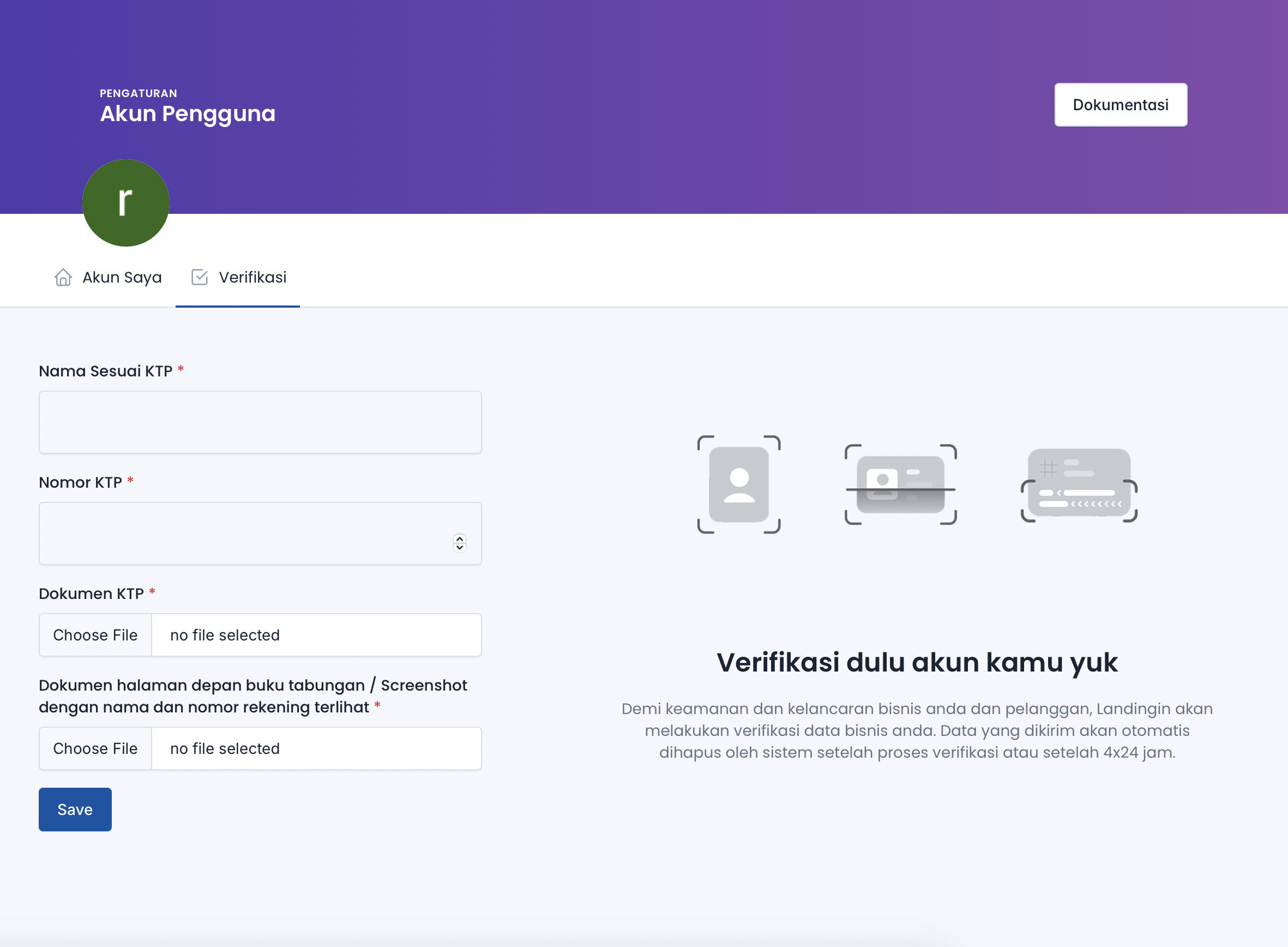 Ini adalah halaman untuk melakukan proses verifikias kyc terkait akun anda. verifikasi kyc dibutuhkan apabila anda ingin melakukan permohonan pencairan saldo pada akun anda terkait hasil dari penjualan.