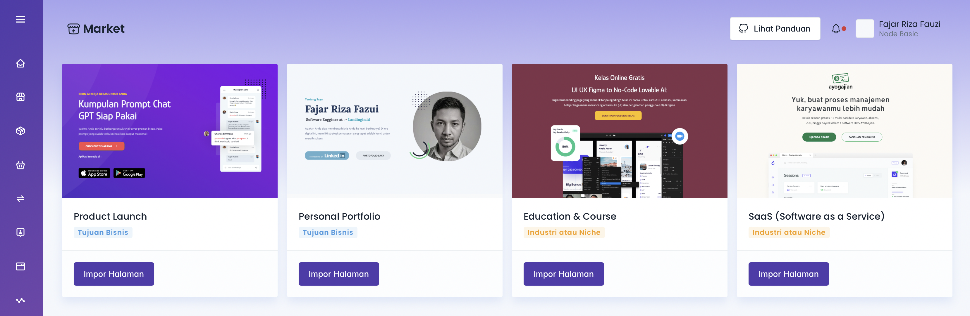 Melalui halaman Presets lalu pilih template yang ingin digunakan lalu klik button "Impor Halaman"