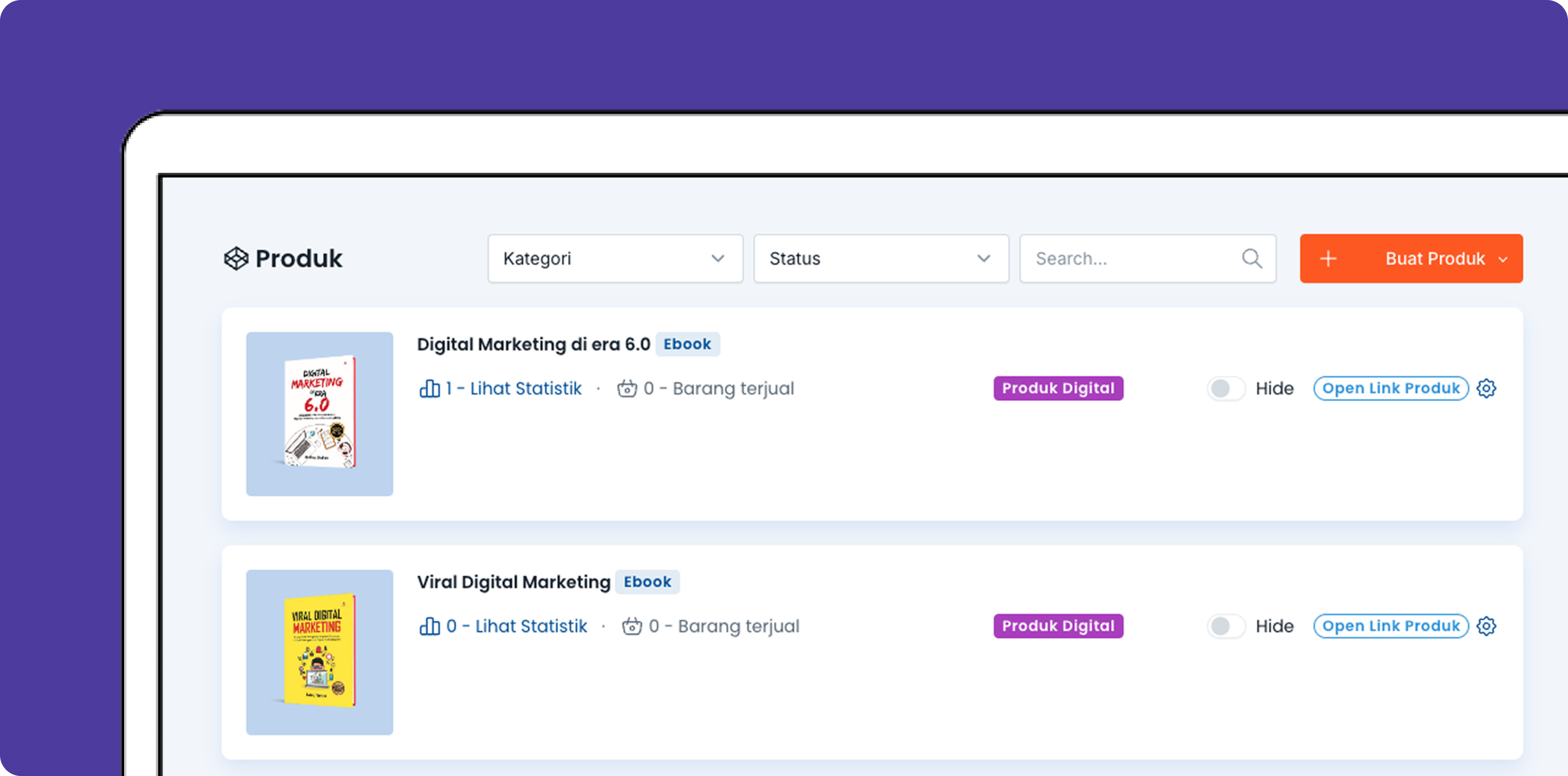 Setiap produk yang berhasil anda tambahkan akan, sistem akan menggenerate otomatis sebuah link produk yang dapat anda gunakan untuk kebutuhan marketing atau advertising.