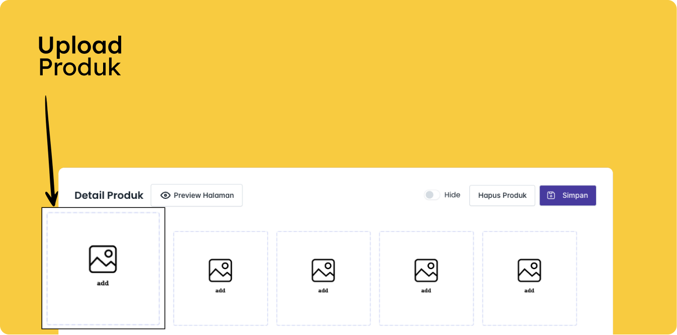 Tiap produk anda dapat mengupload maksimal 5 gambar yang nantinya akan tampil berupa gambar slideshow pada halaman link produk anda.
