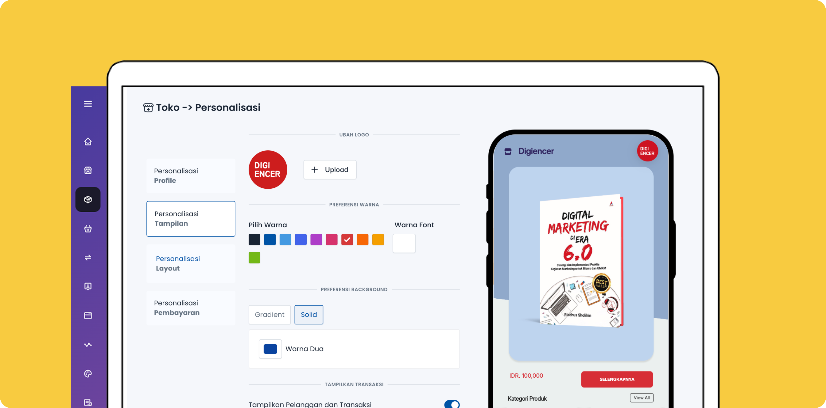Fitur ini memungkinkan anda untuk melakukan personalisasi sesuai dengan brand produk yang akan dijual pada toko tersebut. personalisasi yang dapat dilakukan diantaranya :