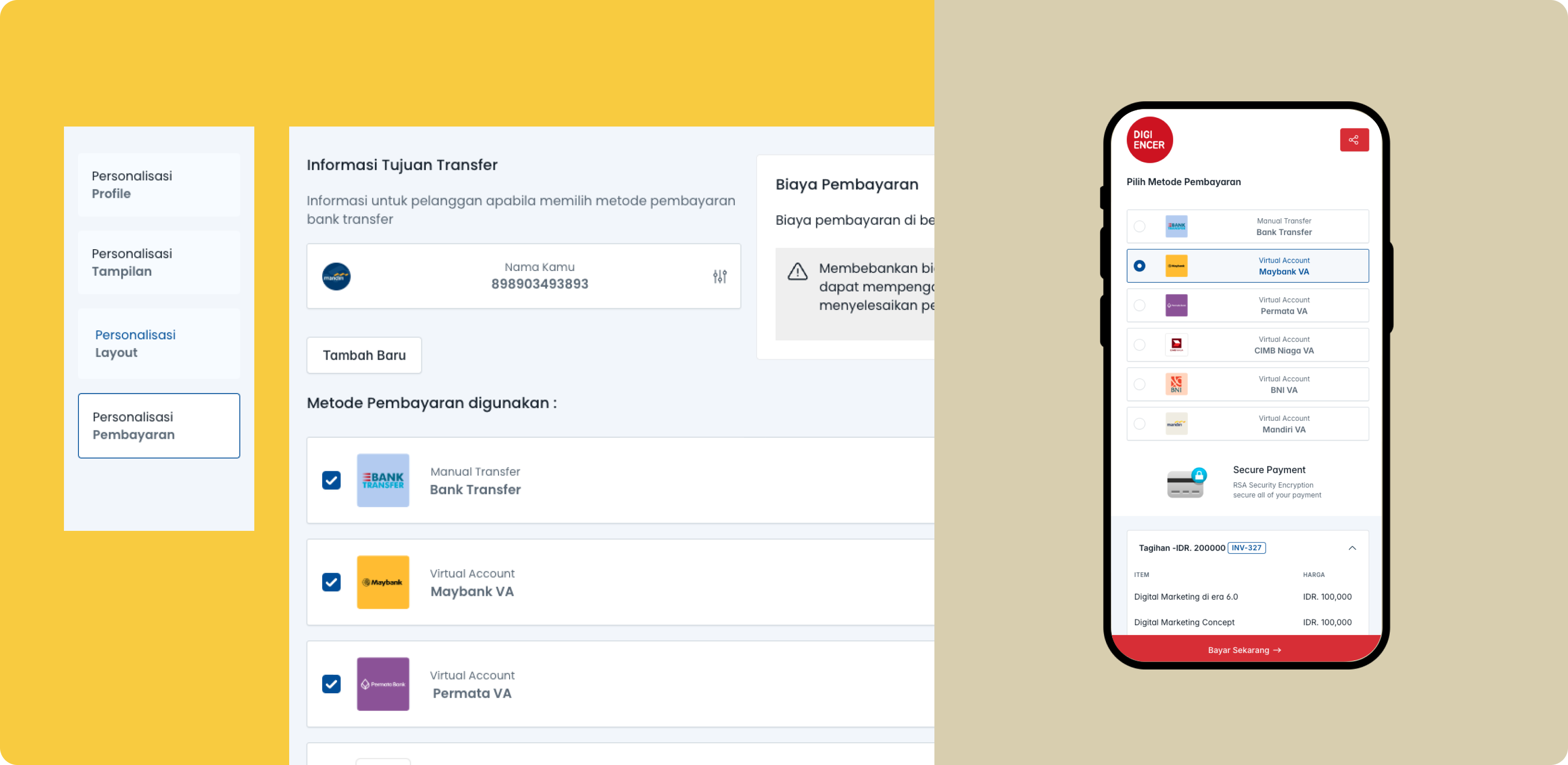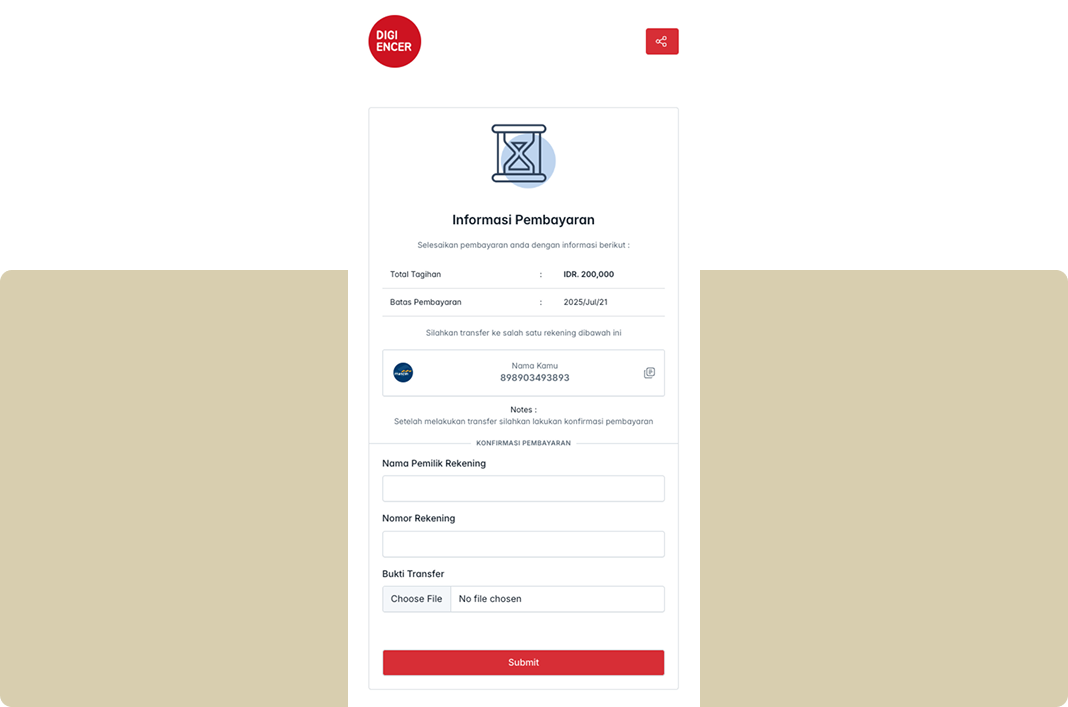 Anda bisa mencantumkan informasi rekening tujuan transfer lebih dari satu bila ada. dan pelanggan bisa langsung melakukan konfirmasi pembayaran.