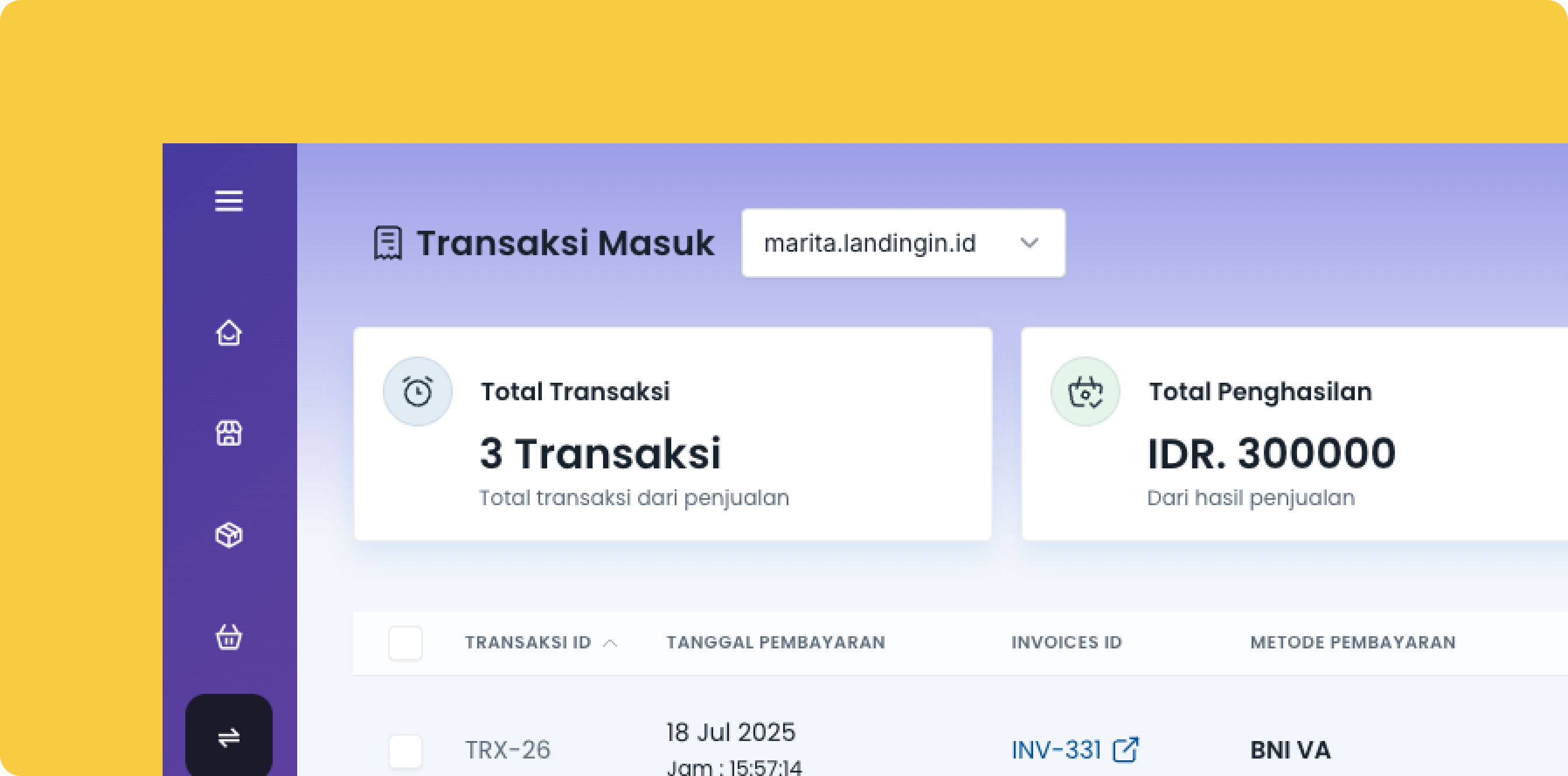 Data transaksi yang ditampilkan berdasarkan domain landing page anda dan sama dengan domain toko anda.