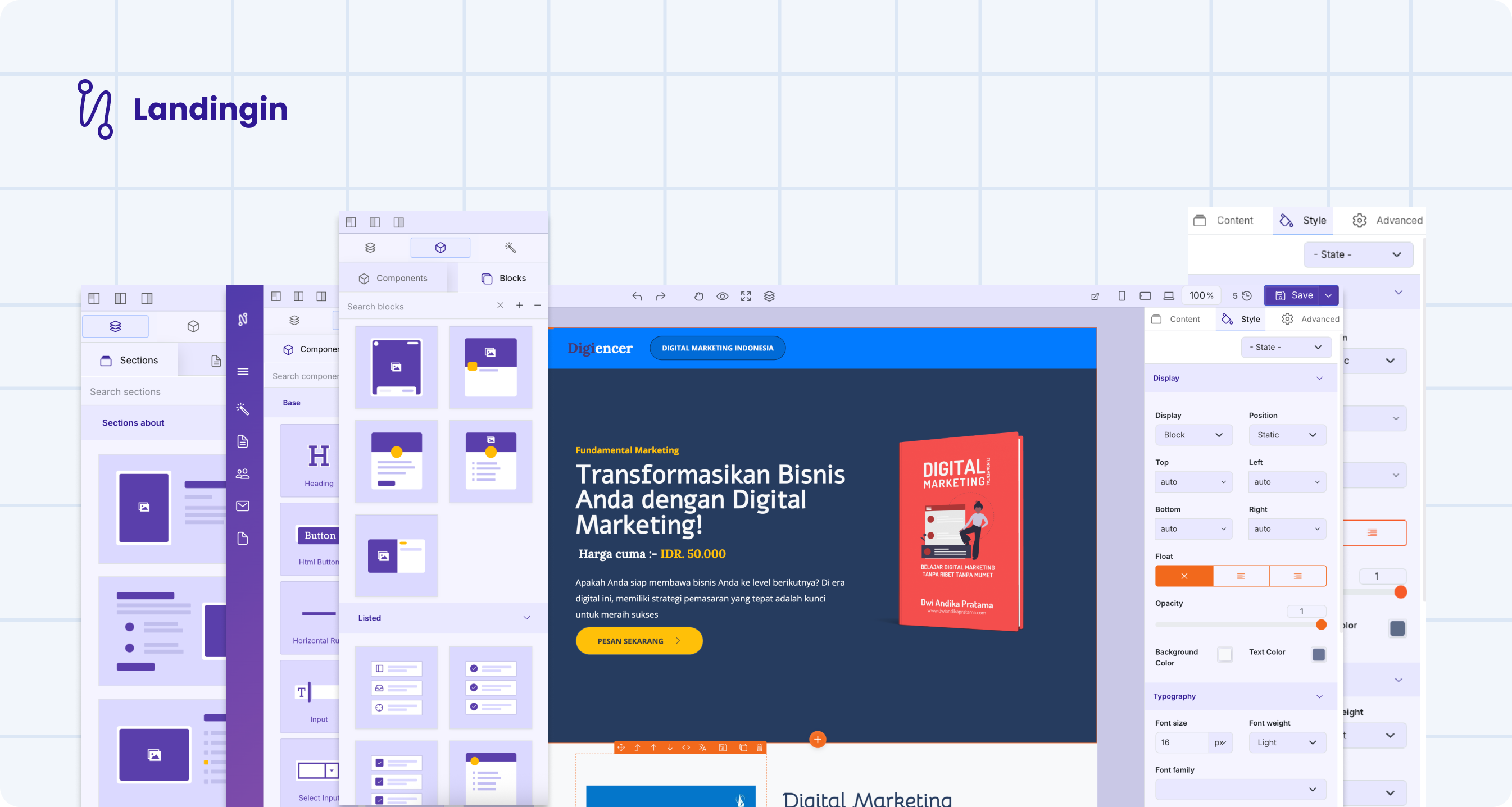 - Save : Fitur menyimpan perubahan landing page yang telah dilakukan.